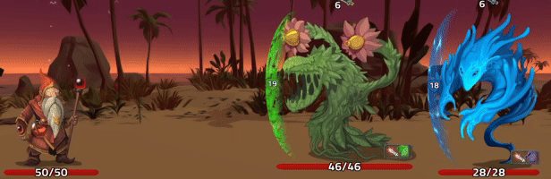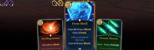 Most cards are attuned to one of three elements - Fire, Water or Nature. Each of these has a corresponding strength and weakness - for example, Fire actions are strong against Nature and weak against Water. Naturally certain enemies and bosses also favor a particular element, so while your Fire deck might crush a group of tree spirits while travelling through a forest, it's going to struggle against a hoard of angry water elementals you encounter while walking along the coast... Will you try to specialize in one element to increase synergy? Or will you favor a more balanced approach to reduce your potential weaknesses?